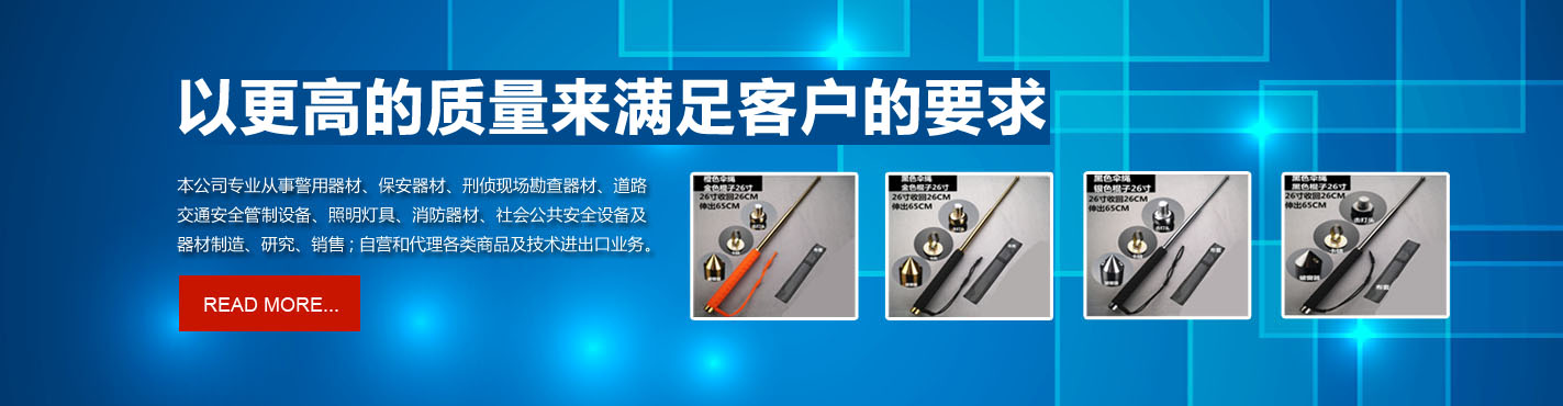靖江市天水警用器材制造有限公司是集科研、生產、銷售和工程設計安裝于一體高科技密集型骨干企業。本公司專業從事警用器材、保安器材、刑偵現場勘查器材、道路交通安全管制設備、照明燈具、消防器材、社會公共安全設備及器材制造、研究、銷售;自營和代理各類商品及技術進出口業務。公司本著“誠實守信,團結創新,拿優質的產品保護您,以優良的服務回報您。”的經營理念不斷向前發展。同......